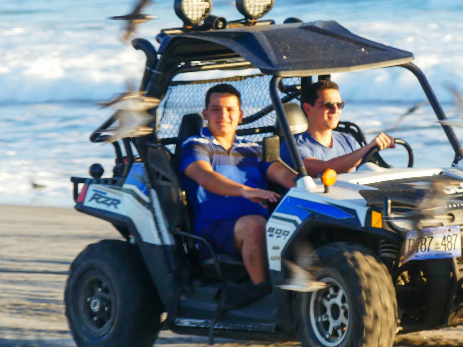 Se viraliza imágenes de conductores de un vehículo Polaris RZR 800 con placas P187487 molestando a grupos de aves migratorias en playa Costa del Sol. #denunciaCiudadana