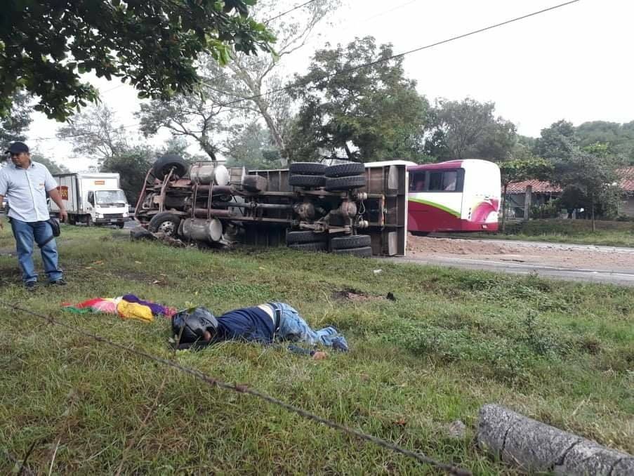 #Accidente|| Volqueta perdió el control está mañana en el kilómetro 137 del Caserío Valle Alegre del Cantón El Brazo, San Miguel, provocando el fallecimiento de un motociclista, quien no logró esquivar a la volqueta. La excesiva carga de la volqueta habría hecho que perdiera el control. La identidad del fallecido por el momento se desconoce. Lugareños que fueron testigos del fatal suceso, aseguran que el motociclista es cobrador comercial y se desplazaba en sentido que de Usulután conduce a San Miguel.